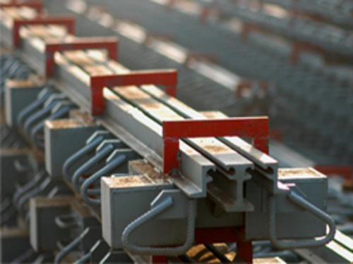 1、模數(shù)式橋梁伸縮縫所使用鋼筋、橡膠應(yīng)符合TRANBBS設(shè)計(jì)文件和TRANBBS技術(shù)規(guī)范的要求。砼:伸縮縫的澆注均采用C50水泥砼?刂破涮涠葷M足混凝土罐車運(yùn)輸?shù)淖钚∫螅?yīng)適當(dāng)摻入外加劑,減小水灰比,減少混凝土收縮。
